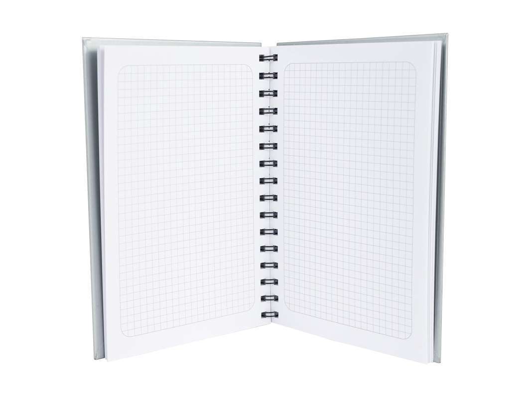Cuaderno matemáticas tapa dura plateada.