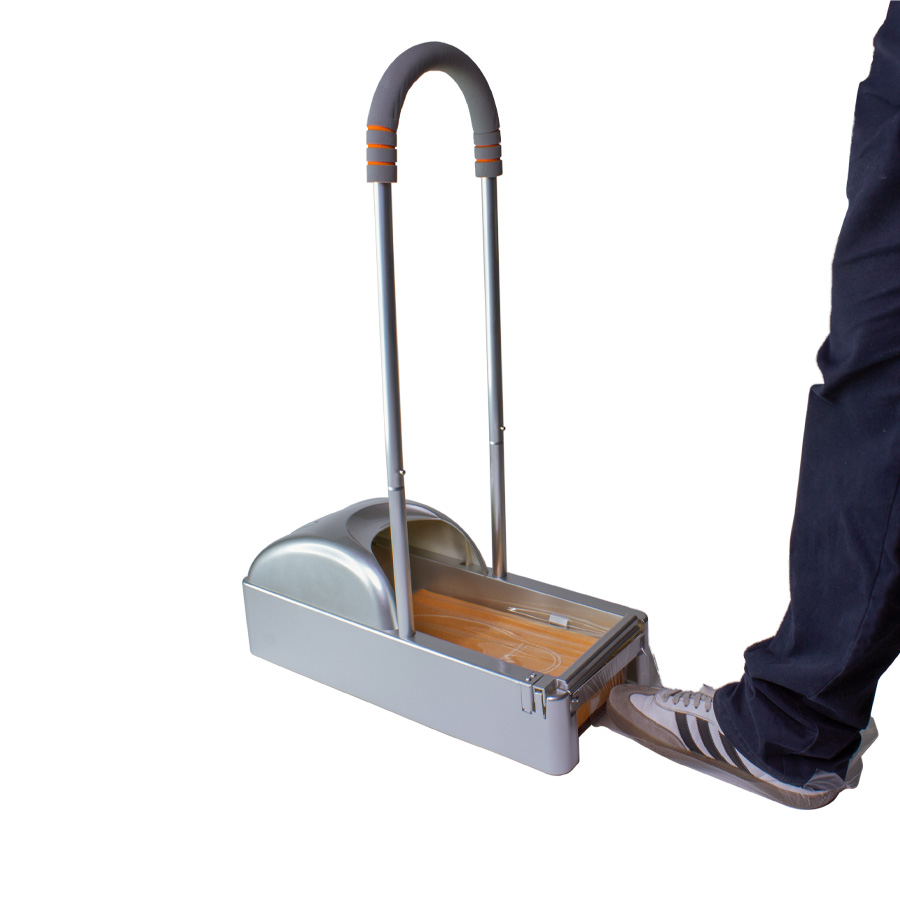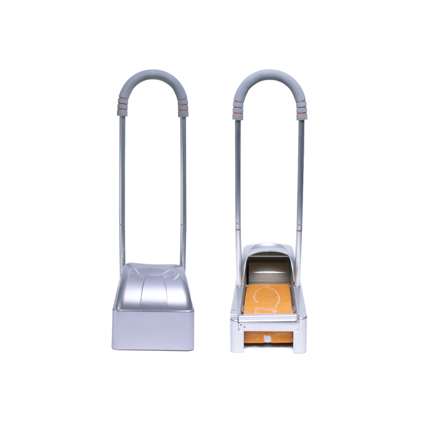 Dispensador Cubre-Calzado Tamaño:51 x 21.5 x 21.5 cm / Altura con soporte manual 77.5 cm Colores: Plata Logotipo personalizable con: Serigrafía