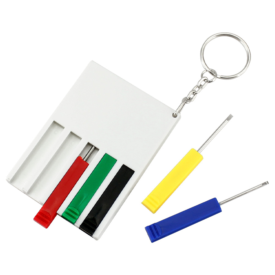 Mini destornilladores Tamaño:5 x 7 x 0.6 cm Colores: Blanco Logotipo personalizable con: Serigrafía