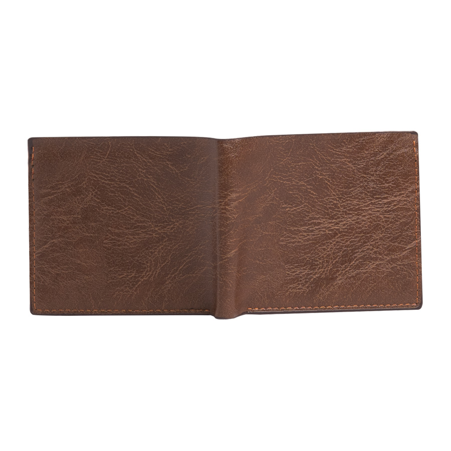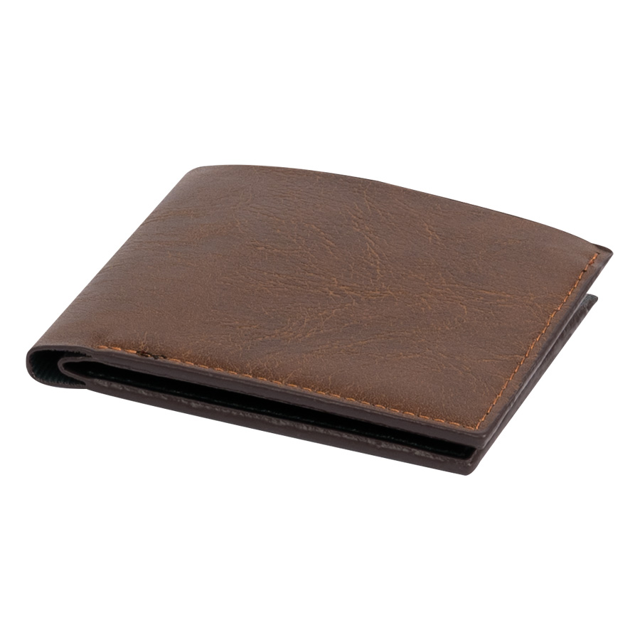 Billetera económica de Eco-Cuero DENVER Tamaño: 12 x 9.4 x 1.5 cm. (cerrada) / 21.6 x 9.4 x 0.5 cm. (abierta) Colores: Café Logotipo personalizable con: Grabado Láser, Cuño bajo relieve