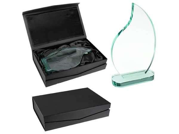 Trofeo flame Trofeo grande de Cristal-Jade Flame. Presentación en caja de cartón forrado negro.